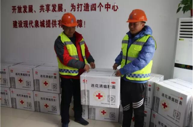12月13日上午,濟南市政公用資產管理運營有限公司聯(lián)合山東省紅十字會、濟南市紅十字會、石家莊以嶺藥業(yè)集團,在工業(yè)北路快速路項目部為奮戰(zhàn)在各重點在建工程一線的農民工捐贈了價值約11萬元的治療流感藥品“蓮花清瘟膠囊”。
