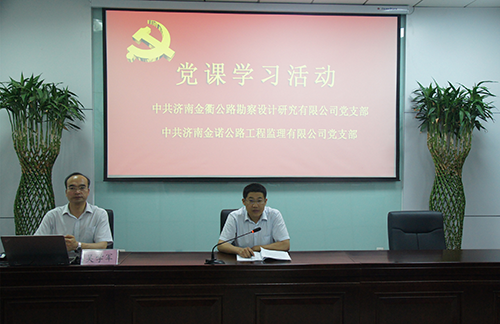 為進一步學(xué)習(xí)貫徹落實黨的十九大精神,深入領(lǐng)會山東省新舊動能轉(zhuǎn)換重大工程會議要求,激發(fā)廣大黨員干部新時代新?lián)?dāng)新作為,2018年5月25日下午,濟南金諾公路工程監(jiān)理有限公司黨支部、濟南金衢公路勘察設(shè)計研究有限公司黨支部組織全體黨員、中層及以上干部、積極分子五十余人在金衢公司第一會議室進行黨課學(xué)習(xí)。濟南金諾公司黨支部書記、董事長兼總經(jīng)理馮子強,濟南金衢公司黨支部書記、董事長兼總經(jīng)理張建等領(lǐng)導(dǎo)出席學(xué)習(xí)活動,會議由濟南金衢公司張建書記主持。