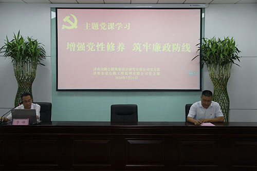 為深入學(xué)習(xí)貫徹習(xí)近平新時(shí)代中國(guó)特色社會(huì)主義思想,進(jìn)一步落實(shí)黨風(fēng)廉政建設(shè)主體責(zé)任,加強(qiáng)公司黨員干部反腐倡廉教育,筑牢黨員干部拒腐防變思想防線,2018年7月31日下午,濟(jì)南金衢公路勘察設(shè)計(jì)研究有限公司黨支部、濟(jì)南金諾公路工程監(jiān)理有限公司黨支部組織全體黨員、中層及以上干部、積極分子五十余人在金衢公司第一會(huì)議室進(jìn)行黨課學(xué)習(xí)。濟(jì)南金諾公司黨支部書記、董事長(zhǎng)兼總經(jīng)理馮子強(qiáng),濟(jì)南金衢公司副總經(jīng)理余利軍等領(lǐng)導(dǎo)出席學(xué)習(xí)活動(dòng),會(huì)議由濟(jì)南金諾公司副總經(jīng)理兼黨支部紀(jì)檢委員宋海濤同志主持。
