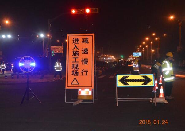 當時氣溫在零下10℃左右,施工人員、材料、機械全部準備完畢,現(xiàn)場參與施工人員達200余人、各類設備20余臺。截止到次日凌晨4點,東營路至淄博路段施工區(qū)域已按照業(yè)主要求封閉完成并正式開始施工。