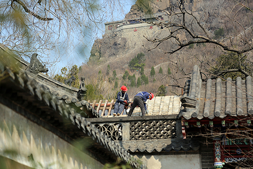 同時,在確保工期的基礎(chǔ)上,嚴(yán)格遵循古建修復(fù)規(guī)律,修舊如舊,最大程度保護(hù)華陽宮古建筑群的原生態(tài)歷史風(fēng)貌,與省內(nèi)資質(zhì)最高、經(jīng)驗最豐富的曲阜市三孔古建筑工程管理處通力合作,原汁原味呈現(xiàn)華陽宮“新貌”。近日,我們走進(jìn)了華陽宮古建筑群修復(fù)現(xiàn)場,為大家揭秘修復(fù)工作中的“四大工種”與“六大古法”。
