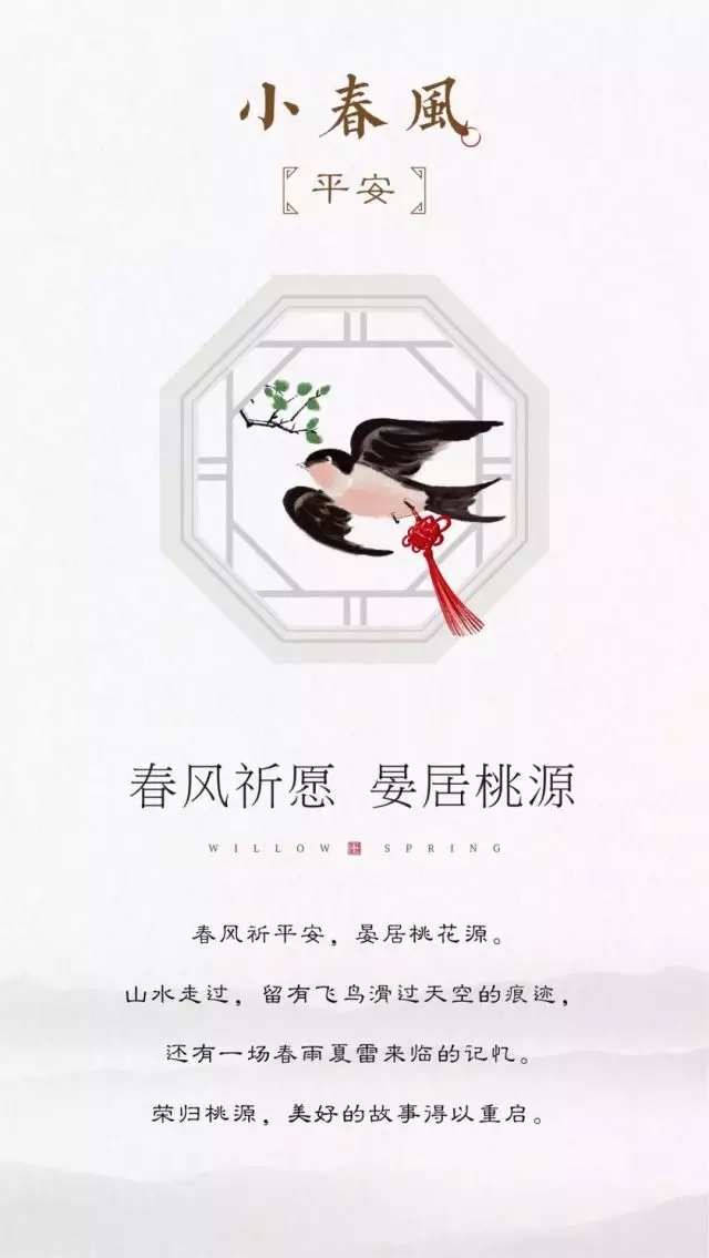 小春風(fēng),以詩(shī)意的水墨風(fēng),將象征著生機(jī)、活力、美好與希望的春天收藏在這一座“都市桃花源”之中,寓意著春天的種種美好、春天般的幸福生活能夠常駐于此。