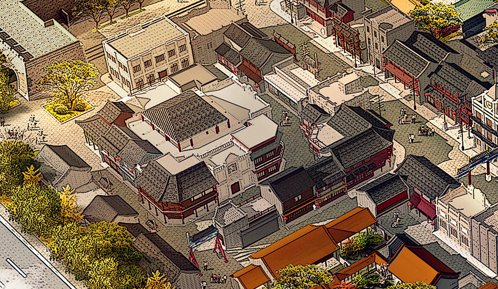 目前,項目現(xiàn)場與規(guī)劃效果圖的“吻合度”已經(jīng)越來越高。占地面積最大、院落層次最復雜的“親王府”已現(xiàn)雛形,城隍廟、城門樓、各類民國建筑輪廓一目了然,不久的將來,這些場景都將會出現(xiàn)在影視作品中。