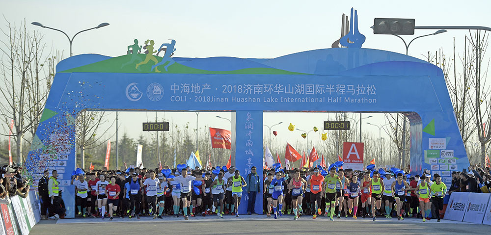 10月28日上午8點,中海地產(chǎn)·2018濟南環(huán)華山湖國際半程馬拉松在濟南華山腳下鳴槍開跑。來自24個省區(qū)市的5000余名跑友以及13名國外選手參賽。山東省體育局局長李政,濟南市委常委、宣傳部部長楊峰,副市長王桂英,歷城區(qū)委書記吳承丙,濟南日報報業(yè)集團董事長馬利,濟南市體育局局長高立文,濟南廣播電視臺臺長孫世會,濟南城市建設(shè)集團董事長李國祥等出席開幕式并為開賽鳴槍。