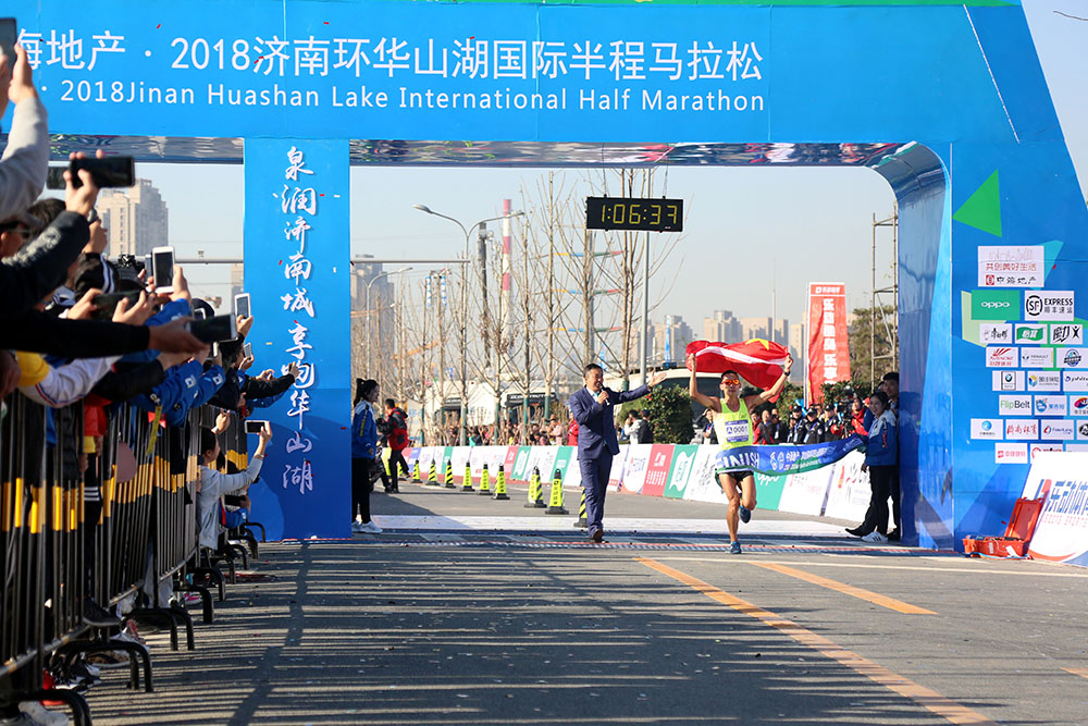 經(jīng)過激烈角逐,男子組前三名分別由棗莊選手李子成和兩名肯尼亞選手獲得,女子組前三名分別由遼寧選手王佳偉和兩名濟南選手獲得。除了半程馬拉松,賽事還設(shè)置了迷你馬拉松(5公里)以及家庭親子跑,大家共享了運動的快樂。來自國內(nèi)外的5000余名跑馬愛好者在華山湖畔用腳步丈量華山生態(tài)人文新城,感受“齊煙九點”和“鵲華煙雨”的魅力。