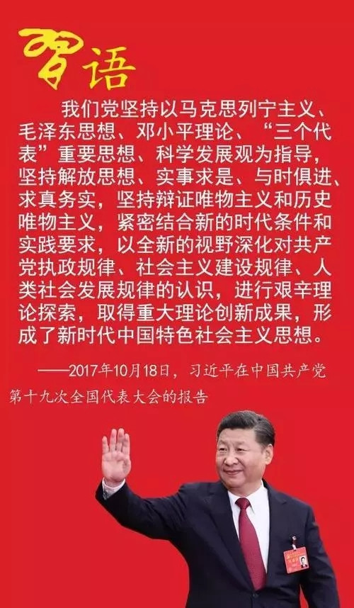 隨著十九大通過《中國共產(chǎn)黨章程(修正案)》,中國共產(chǎn)黨的旗幟上又寫上了習(xí)近平新時代中國特色社會主義思想。