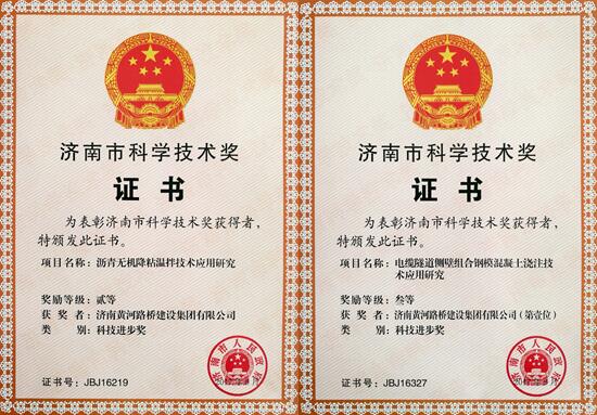 近日,濟南黃河路橋集團兩項成果榮獲濟南市科技進步獎,分別為銀河路橋主要負責的“瀝青無機降粘溫拌技術(shù)應用研究”榮獲濟南市科技進步獎二等獎,獲5萬元獎金;二分公司主要負責的“電纜隧道側(cè)壁組合鋼?;炷翝沧⒓夹g(shù)應用研究”榮獲濟南市科技進步獎三等獎,獲2萬元獎金。