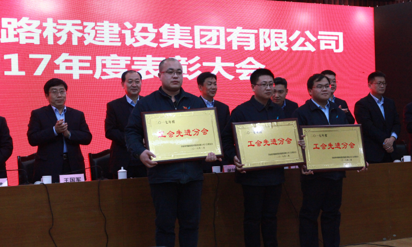 會議結束后,進行了集團公司2017年度表彰大會。對2017年度集團公司先進集體、先進工作者;安全生產工作先進集體、先進個人;工會先進分會和工會積極分子;科技創(chuàng)新工作先進集體、先進個人;優(yōu)秀項目經理、項目總工和職工查隱患工作先進個人;集團公司派遣人員貢獻獎;優(yōu)秀配屬單位和優(yōu)秀材料供應單位進行了表彰,先進集體及個人代表分別上臺進行了領獎。