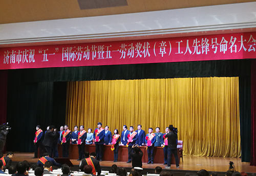 2018年4月23日,濟(jì)南市總工會(huì)在龍奧大廈召開(kāi)濟(jì)南市慶祝“五一”國(guó)際勞動(dòng)節(jié)暨五一勞動(dòng)獎(jiǎng)狀(章)工人先鋒號(hào)命名大會(huì)。大會(huì)表彰了一批工作突出、貢獻(xiàn)卓著的先進(jìn)集體和先進(jìn)個(gè)人。