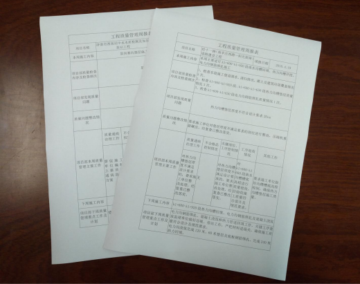 項(xiàng)目部接收質(zhì)量管理交底,并承諾貫徹執(zhí)行?,F(xiàn)各項(xiàng)目已按交底要求開(kāi)展相關(guān)工作,并開(kāi)始上報(bào)質(zhì)量管理工作周報(bào)等報(bào)表,公司可及時(shí)掌握各項(xiàng)目質(zhì)量管理動(dòng)態(tài),有針對(duì)性的調(diào)度各項(xiàng)目部質(zhì)量管理工作,有效提高了公司質(zhì)量管理監(jiān)管的力度。