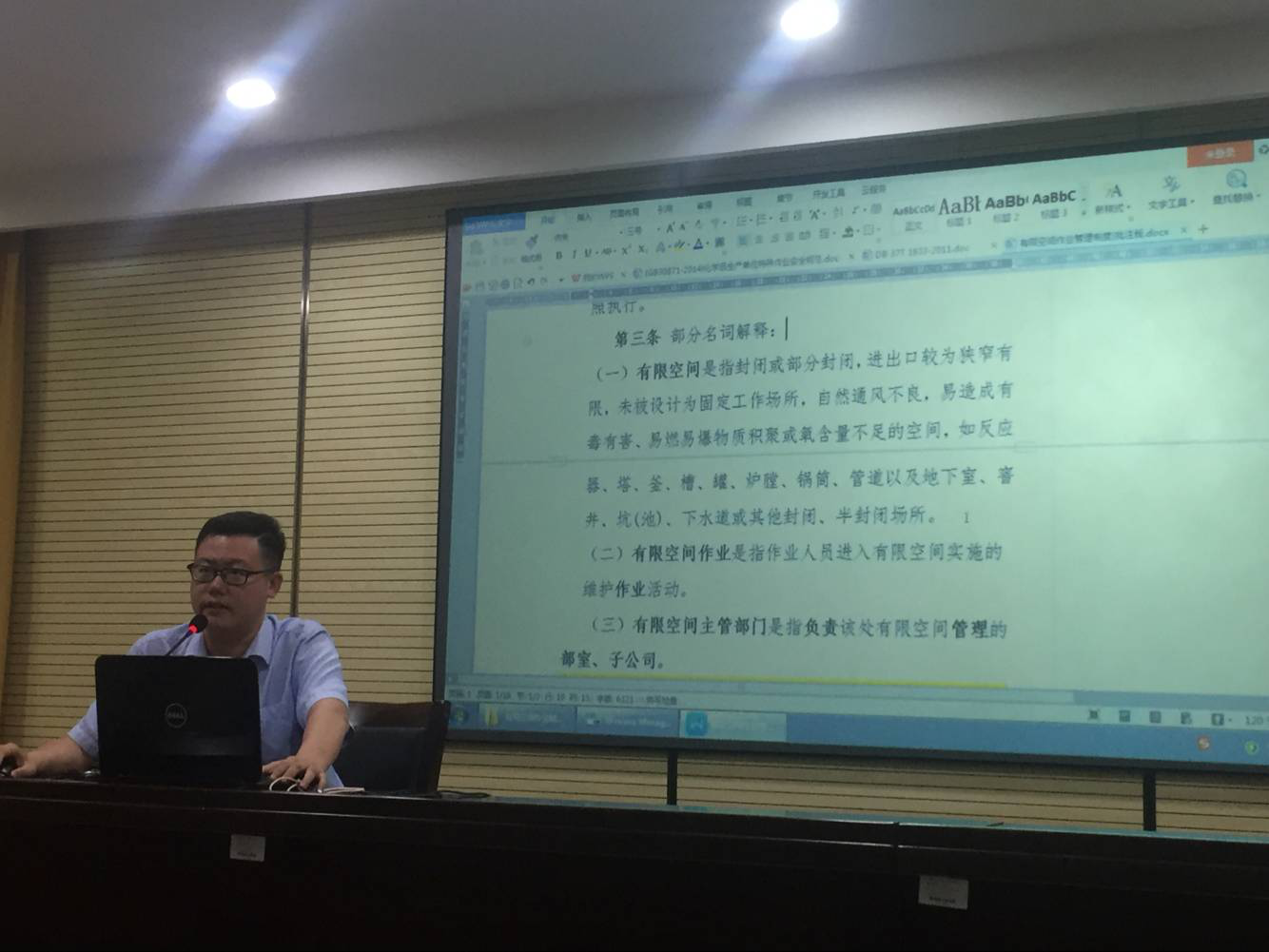 為更好的推進(jìn)落實《有限空間作業(yè)管理制度》,增強管理人員和作業(yè)人員對制度和相關(guān)法律法規(guī)的認(rèn)識,加強有限空間作業(yè)審批及管控力度,降低安全事故發(fā)生概率,安全質(zhì)量部和企管人力部在6月6日下午共同組織了公司《有限空間作業(yè)管理制度》及有限空間作業(yè)相關(guān)法律規(guī)范的培訓(xùn)活動。