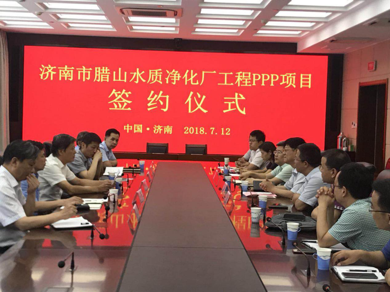 2018年7月12日上午10點30分,在龍奧大廈G1407會議室,市城鄉(xiāng)水務局舉行了濟南市臘山水質凈化廠工程政府和社會資本合作(PPP)項目簽約儀式,與中標單位北控水務(中國)投資有限公司簽署了ppp項目合同。會議由市城鄉(xiāng)水務局排水處處長湯啟剛主持,市城鄉(xiāng)水務局副巡視員朱丹彤做出重要講話,資產運營公司副總經理李琰、北控水務東部大區(qū)總經理于良法先后發(fā)言。