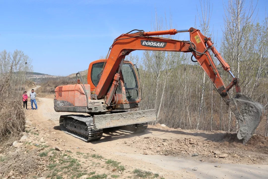 11:20王棟棟和任書記在生產(chǎn)路整修現(xiàn)場。村北側(cè)的生產(chǎn)路是連通大黃崖村與農(nóng)田果園的道路,也是通往鄰村陶裕村最便捷的道路。去年受大雨影響,道路嚴(yán)重受損,隨時(shí)有塌陷的危險(xiǎn),給群眾生產(chǎn)生活帶來諸多不便。他帶領(lǐng)村兩委和部分黨員群眾,利用三天時(shí)間對道路進(jìn)行了修復(fù),搶修出了一條臨時(shí)通道。要徹底解決道路塌陷問題,就一定要重新翻修,日前,他從縣交通部門爭取的資金已經(jīng)到位,施工隊(duì)伍已進(jìn)場施工,目前正處于找平碾壓過程中,很快就將進(jìn)行道路硬化,一周時(shí)間即可恢復(fù)通行。