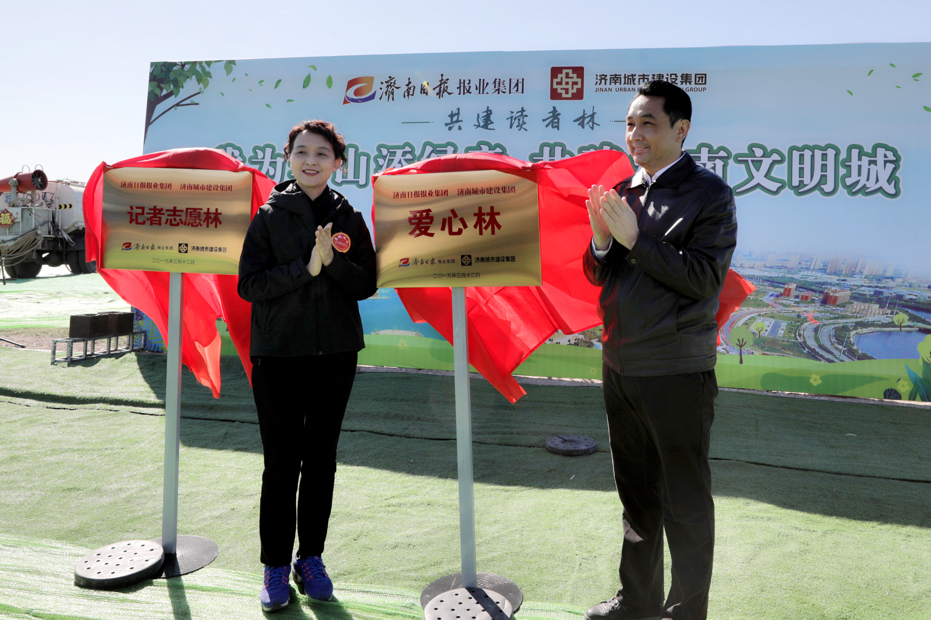在華山歷史文化濕地公園內(nèi),來自雙方單位的干部職工、泉城義工、小記者代表等共計(jì)近500人春種華山,并在華山設(shè)立“記者志愿林”和“愛心林”。濟(jì)南城市建設(shè)集團(tuán)黨委書記、董事長(zhǎng)李國(guó)祥,濟(jì)南日?qǐng)?bào)報(bào)業(yè)集團(tuán)董事長(zhǎng)、黨委書記、濟(jì)南日?qǐng)?bào)社社長(zhǎng)馬利共同為“記者志愿林”和“愛心林”揭牌。