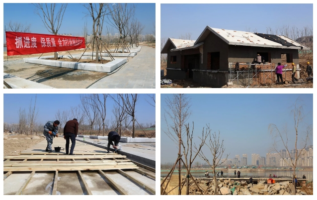 園林二期分為A、B兩個區(qū)域,功能性均為園林及濕地景觀,總面積約2257畝(不含覆綠項目),為確保五一達到開園條件,每天二期施工人數(shù)能達到600余人,目前正進行園路及廣場鋪裝、公廁及售賣、駁岸、木棧道、挑臺、廊架、水榭等建設施工。“園區(qū)植物種類有百余種,櫻花、海棠、玉蘭等樹開花后能形成塊狀景觀帶,將為市民提供一個新的踏春好去處”,項目現(xiàn)場負責人表示。
