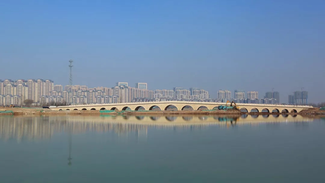 崇正橋煙雨橋外裝進行中,21孔橋創(chuàng)濟南之最