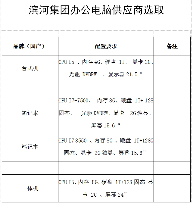 現(xiàn)對(duì)集團(tuán)辦公電腦采購(gòu)選取供應(yīng)商進(jìn)行詢(xún)價(jià),有關(guān)事項(xiàng)通知如下,歡迎各單位參加報(bào)價(jià)。