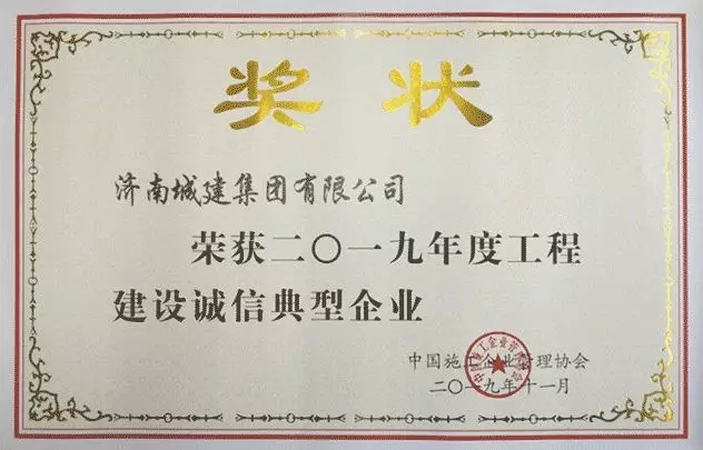 近日,中國施工企業(yè)管理協(xié)會2019年度工程建設誠信企業(yè)推介大會在北京召開。會議公布了2019年度工程建設企業(yè)社會信用評價結果,對獲得2019年度工程建設誠信典型企業(yè)、工程建設企業(yè)社會信用評價AAA級信用企業(yè)等單位進行了表彰。濟南城市建設集團所屬濟南城建集團榮獲“2019年度工程建設誠信典型企業(yè)”稱號。