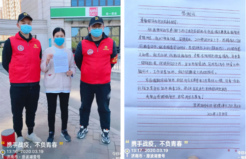 3月18日上午,濟南西城資產(chǎn)管理有限公司員工楊智修、李聰兩位同志,在濟陽澄波湖壹號社區(qū)執(zhí)勤的崗位上,收到了一封暖心的“感謝信”。正是“資產(chǎn)兄弟”細致周到的工作,才避免了這位“粗心”小姐姐的損失。