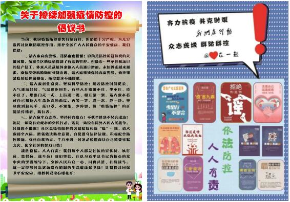 街道社區(qū)和集團(tuán)印發(fā)了《新冠肺炎防控知識(shí)手冊(cè)》、《關(guān)于持續(xù)加強(qiáng)疫情防控的倡議書(shū)》等宣傳手冊(cè)、宣傳頁(yè),對(duì)新型冠狀病毒感染的肺炎的相關(guān)知識(shí)進(jìn)行了答疑解惑。目前我國(guó)疫情防控形勢(shì)持續(xù)好轉(zhuǎn),但疫情尚未解除,現(xiàn)階段境外輸入日益加劇,疫情防控不容麻痹松懈,提醒居民出入務(wù)必佩戴好口罩,做好個(gè)人防護(hù),如有省外返濟(jì)或境外旅居史的要及時(shí)上報(bào)。