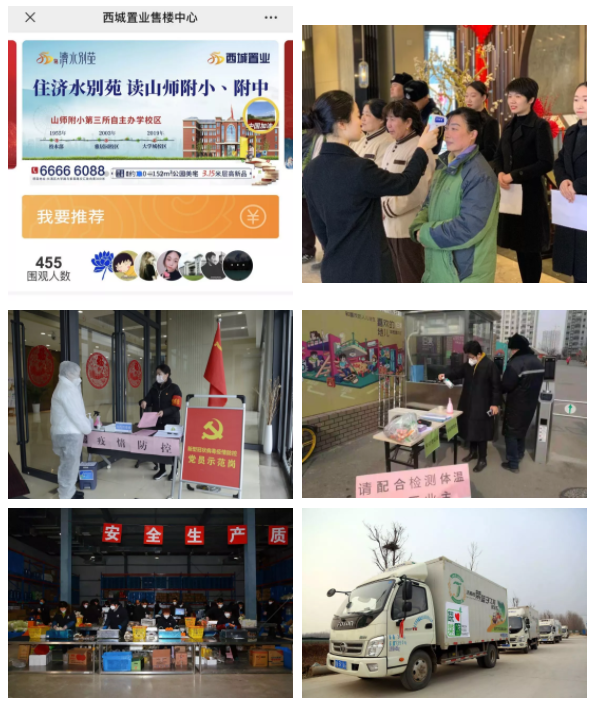 在集團黨委的引領下,各級黨組織、所屬企業(yè)積極響應,主動作為,各企業(yè)主要負責同志認真履行第一責任人職責,對疫情防控工作親自安排部署、親自組織推動、親自跟蹤問效,充分發(fā)揮自身優(yōu)勢,組織調配資源和力量,全力做好疫情防控服務保障,以實際行動踐行使命和責任擔當。集團楊柳春風、西城·濟水上苑等地產項目暫停營銷接待工作,堅持每天開展全面、持續(xù)消毒,加強園區(qū)、寫字樓的聯(lián)防聯(lián)控,啟動線上VR看房通道,足不出戶在家安心看房,讓客戶享受便捷、周到的服務。西城資產公司在西城大廈一層南門設置“消毒回廊”,公司防控小組每天到西客站東場綜合體、西城大廈、東廣場地下停車場、東廣場地下餐廳及長清西部創(chuàng)新園項目、大學城 9 號樓、長清安置三區(qū)等 7 個項目督導檢查疫情防控工作情況,確保區(qū)域防控措施落實到位。濟西農場公司全員上崗,加班加點,將線上與線下銷售平臺相結合,每天向市內配送平價新鮮蔬菜,為疫情期間全市蔬菜市場供應和穩(wěn)定做出了積極貢獻。
