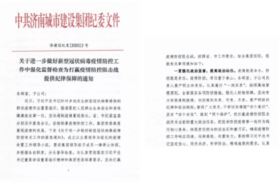 疫情就是命令,防控就是責任。濟南城市建設集團把疫情防控作為當前最重要的政治任務來抓,按照中央、省、市委關于做好新型冠狀病毒肺炎疫情防控的部署和要求,快速響應,迅速部署,采取有力措施,注重黨委、紀委兩個責任的協(xié)同配合,深化一線督導檢查,以最堅決的態(tài)度、最嚴格的執(zhí)行、最果斷的行動,全力以赴推動疫情防控責任落實。