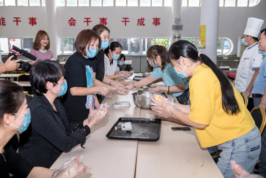 活動(dòng)現(xiàn)場(chǎng),集團(tuán)政工部負(fù)責(zé)同志代表集團(tuán)向大家致以了節(jié)日的問候和祝福。隨后,面點(diǎn)師傅將制作月餅的皮、餡料、手套、模具等工具發(fā)給大家,“將面皮搓圓后攤平,然后把餡兒放到中間,以食指和拇指的力量慢慢向上收口,合攏后放入模具……”在師傅的悉心教導(dǎo)下,大家有條不紊地開始制作,五人一組,分工明確,各司其職。幾分鐘后,一個(gè)個(gè)制作精美的月餅就完成了。