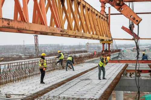 春節(jié)期間,張?zhí)嵊聸]有休假,每天都要到工地一線,隨時(shí)掌握和了解施工進(jìn)展,協(xié)調(diào)解決施工過程中出現(xiàn)的各種問題。在嚴(yán)格落實(shí)各項(xiàng)防疫措施的前提下,青年突擊隊(duì)加班加點(diǎn)干出一個(gè)春節(jié)“大禮包”:架設(shè)箱梁8跨32片,順利跨越青銀高速,實(shí)現(xiàn)關(guān)鍵環(huán)節(jié)的高效突破!
