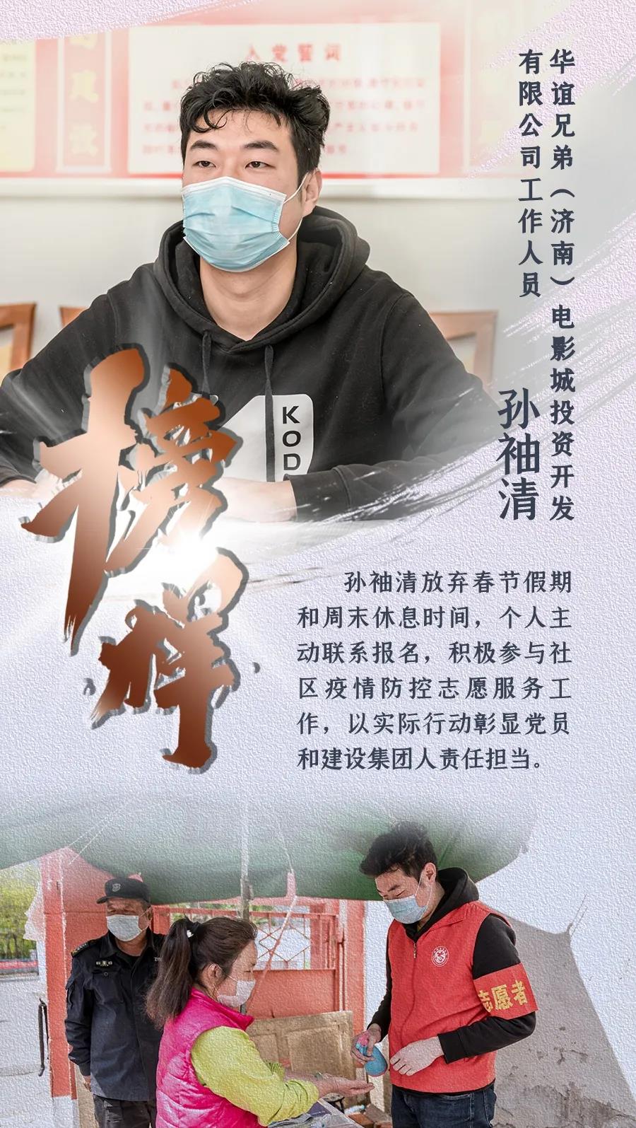 新型冠狀病毒肺炎疫情發(fā)生以來(lái),濟(jì)南城市建設(shè)集團(tuán)認(rèn)真貫徹落實(shí)中央、省、市關(guān)于疫情防控和復(fù)工復(fù)產(chǎn)的決策部署,上下一心、眾志成城,全體干部職工恪盡職守、扎根一線,全員全力投入到疫情防控阻擊戰(zhàn)中。期間,涌現(xiàn)出了眾多先進(jìn)典型和感人故事,用實(shí)際行動(dòng)詮釋了建設(shè)集團(tuán)人的精神風(fēng)貌和責(zé)任擔(dān)當(dāng)。我們?cè)诩瘓F(tuán)宣傳平臺(tái)《榜樣》欄目,推出系列人物報(bào)道,挖掘宣傳一線典型,提振士氣、凝聚力量,激勵(lì)我們繼續(xù)前行,堅(jiān)決打贏疫情防控的人民戰(zhàn)爭(zhēng)、總體戰(zhàn)、阻擊戰(zhàn)。
