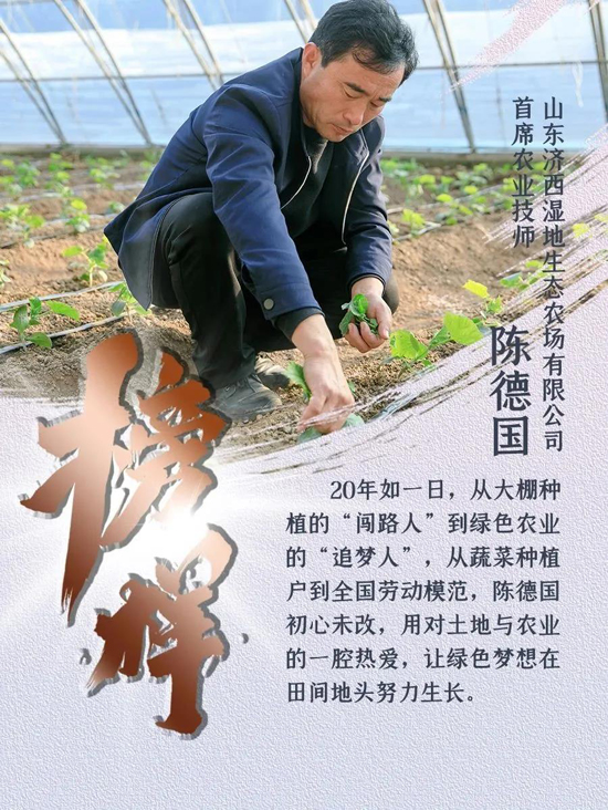 作為黃河流域濟(jì)南段的“綠色明珠”,濟(jì)西濕地四季分明、五彩斑斕。濟(jì)南城市建設(shè)集團(tuán)所屬山東濟(jì)西濕地生態(tài)農(nóng)場有限公司連片的蔬菜大棚里,首席農(nóng)業(yè)技師陳德國早出晚歸、“兩頭不見太陽”,無暇欣賞這近在遲尺的變幻景色,但他卻看得見春耕夏種、秋收冬藏,在深耕細(xì)作中收獲豐收的喜悅。20年如一日,從大棚種植的“闖路人”到綠色農(nóng)業(yè)的“追夢人”,從蔬菜種植戶到全國勞動(dòng)模范,陳德國初心未改,用對(duì)土地與農(nóng)業(yè)的一腔熱愛,讓綠色夢想在田間地頭努力生長。