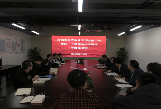 遵照濟(jì)南城市建設(shè)集團(tuán)黨委安排部署,為進(jìn)一步學(xué)習(xí)宣傳貫徹黨的十九屆四中全會(huì)精神,加深對(duì)全會(huì)精神的了解掌握,提高運(yùn)用黨的理論成果推動(dòng)工作的能力,確保園區(qū)各項(xiàng)工作落到實(shí)處,公司于2019年12月份下旬安排三天下午,在印象濟(jì)南園區(qū)會(huì)議室由總經(jīng)理宋光華同志主持召開黨的第十九屆四中全會(huì)精神的專題學(xué)習(xí)。