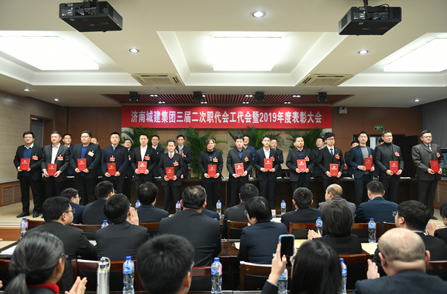1月16日,城建集團(tuán)三屆二次職代會工代會暨2019年度總結(jié)表彰大會在四樓多功能廳順利召開。城建集團(tuán)黨委書記、董事長湯繼沂,黨委副書記、總經(jīng)理牟曉巖等領(lǐng)導(dǎo)班子成員、職工代表、受表彰先進(jìn)單位和先進(jìn)個人代表等共223人參加會議。