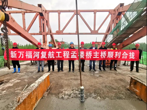 4月19日,隨著最后一方混凝土澆筑完成,經(jīng)過10個(gè)月的建設(shè),濟(jì)寧金鄉(xiāng)新萬福河復(fù)航工程孟樓橋懸臂現(xiàn)澆箱梁順利合攏。