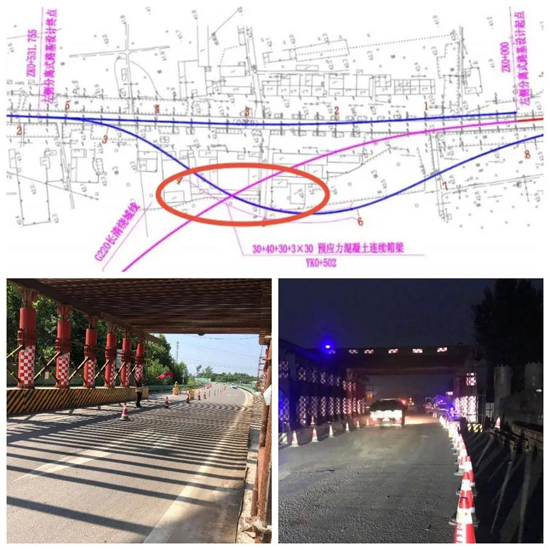 橫跨省道安全暢通,要求高。文昌立交橋橫跨長清G220繞城段,既要保安全又要保暢通,更是加大了交通組織、門洞和支架搭設(shè)、高處作業(yè)的施工難度。
