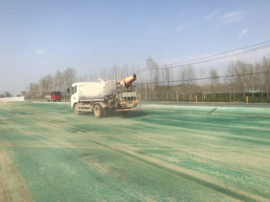 因地制宜,創(chuàng)新?lián)P塵管理。項目部率先引進環(huán)保抑塵劑,對易產(chǎn)生揚塵的重點區(qū)域進行噴灑抑塵劑和堆料封蓋作業(yè),在短時間內(nèi)形成保護層,以削減揚塵污染,確保施工區(qū)域不起揚塵。
