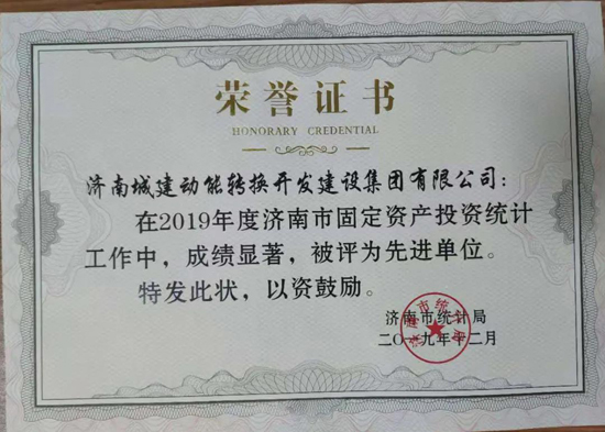 近日,2019年度濟南市固定資產(chǎn)投資統(tǒng)計工作先進集體、先進個人名單公布。濟南城建動能轉(zhuǎn)換開發(fā)建設(shè)集團有限公司榮獲濟南市統(tǒng)計局“2019年度濟南市固定資產(chǎn)投資統(tǒng)計工作先進單位”稱號,冷見奇、潘文凱、周宇三名同志被評為“固定資產(chǎn)投資統(tǒng)計工作先進個人”。