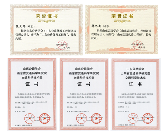 金曰公司總經(jīng)理熊大路、金諾公司總經(jīng)理韓作新榮獲第四屆“山東公路優(yōu)秀工程師”榮譽(yù)稱號(hào)。金曰公司《基于海綿城市理念的透水混凝土路面性能保障關(guān)鍵技術(shù)及工程應(yīng)用》科研成果榮獲山東公路學(xué)會(huì)山東省交科院交通科學(xué)技術(shù)一等獎(jiǎng),金宇公司《年久鋼質(zhì)護(hù)欄立柱埋深無損檢測精度控制與現(xiàn)場應(yīng)用研究》科研成果榮獲山東公路學(xué)會(huì)山東省交科院交通科學(xué)技術(shù)三等獎(jiǎng)。