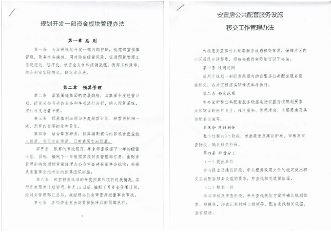 目前已初步形成《安置區(qū)公共服務(wù)配套設(shè)施管理辦法》、《資金支付流程及制度》等5項工作的流程、制度、模板。