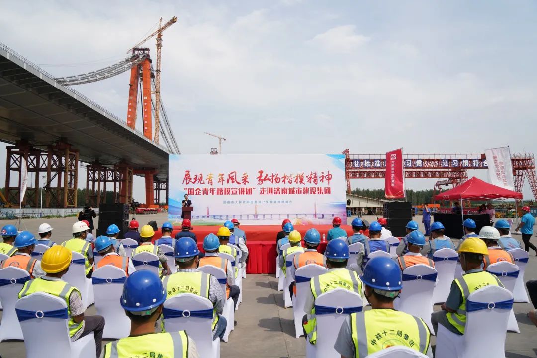 6月7日下午,濟(jì)南市“國企青年楷模宣講團(tuán)”第二期宣講走進(jìn)濟(jì)南城市建設(shè)集團(tuán),在鳳凰黃河大橋施工現(xiàn)場開展青年先鋒楷模事跡分享會。濟(jì)南市國資委黨委委員、副主任周蒨,市委黨史學(xué)習(xí)教育第十四巡回指導(dǎo)組副組長殷軍、組員馬俊海,濟(jì)南城市建設(shè)集團(tuán)副總經(jīng)理許為民,市國資委、建設(shè)集團(tuán)相關(guān)處室負(fù)責(zé)人及一線職工代表50余人共同聆聽。