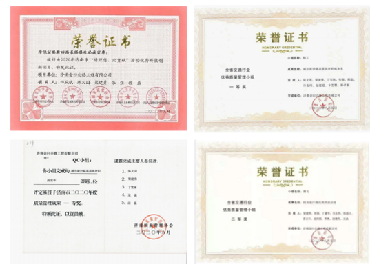 項目在保證施工安全、質(zhì)量、工期的同時,積極開展優(yōu)化、創(chuàng)新活動。“精工”QC小組《減小新舊路基搭接處的病害率》課題,被濟南市質(zhì)量管理協(xié)會評為2020年度一等獎,山東公路協(xié)會一等獎,并被評為2020年濟南市“講理想、比貢獻”活動優(yōu)秀科技創(chuàng)新項目;“騰飛”QC小組《提高通行路段圍擋清潔度》課題,被濟南市質(zhì)量管理協(xié)會評為2020年度二等獎。