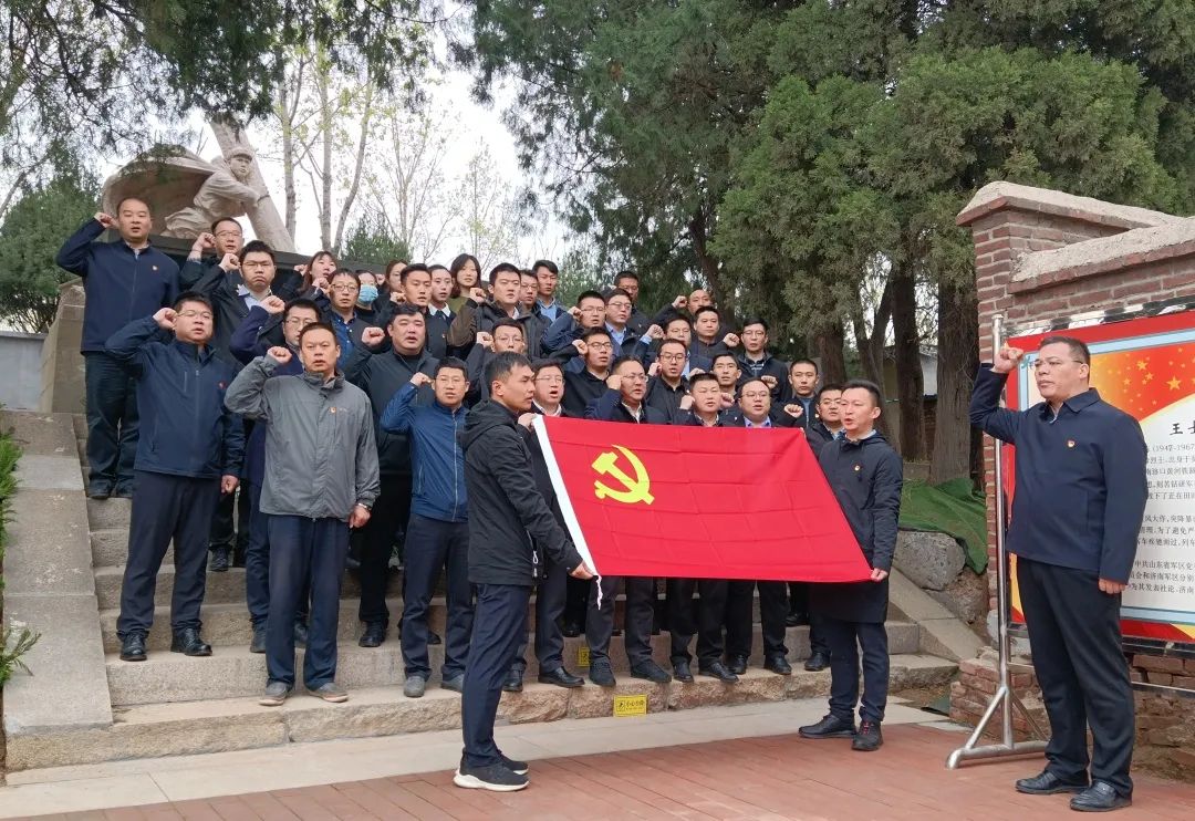 活動中,黨員代表向王士棟烈士敬獻花籃,黨員們瞻仰烈士紀念碑、深情緬懷烈士功績、寄托哀思并在中國共產(chǎn)黨黨旗的見證下,重溫入黨誓詞。