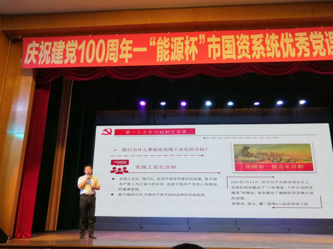 為慶祝中國(guó)共產(chǎn)黨成立100周年,扎實(shí)推進(jìn)黨史學(xué)習(xí)教育,6月2日,由濟(jì)南市國(guó)資委主辦、濟(jì)南能源集團(tuán)承辦的“能源杯”市國(guó)資系統(tǒng)優(yōu)秀黨課匯報(bào)展示觀摩會(huì)在北郊熱電廠禮堂舉行。集團(tuán)選送黨課《第一個(gè)五年計(jì)劃》,參加現(xiàn)場(chǎng)觀摩評(píng)比并榮獲三等獎(jiǎng)。