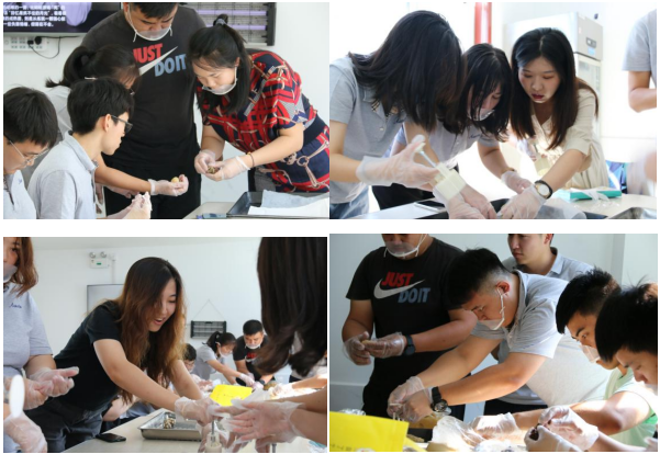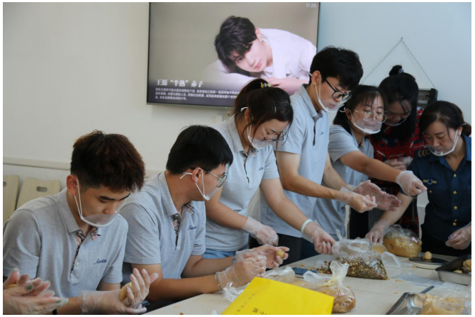 活動中,大家認真學(xué)習(xí)了月餅的制作方法,稱重、捏團、入模、成型,每個人分工作合作,每個步驟都做的一絲不茍。經(jīng)過二十分鐘的烘烤,新鮮的月餅伴著香甜的氣息端出烤爐,大家也在辛苦過后品嘗到了自己的勞動成果。