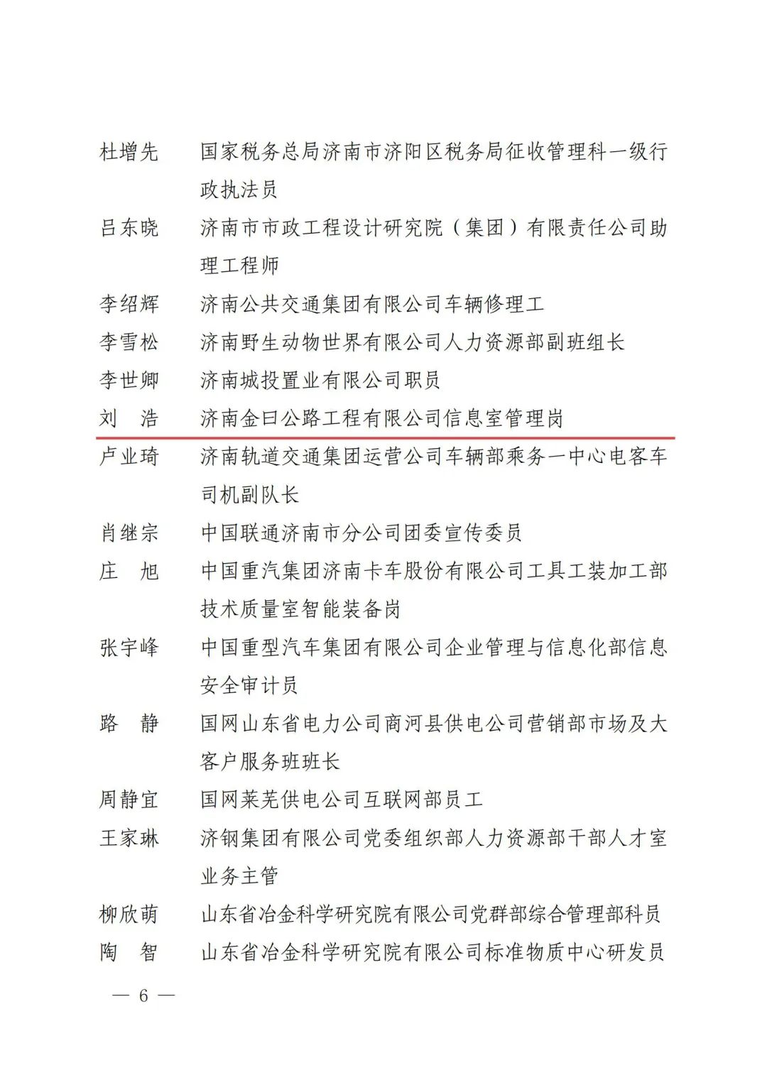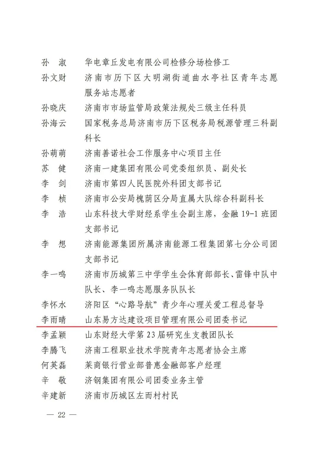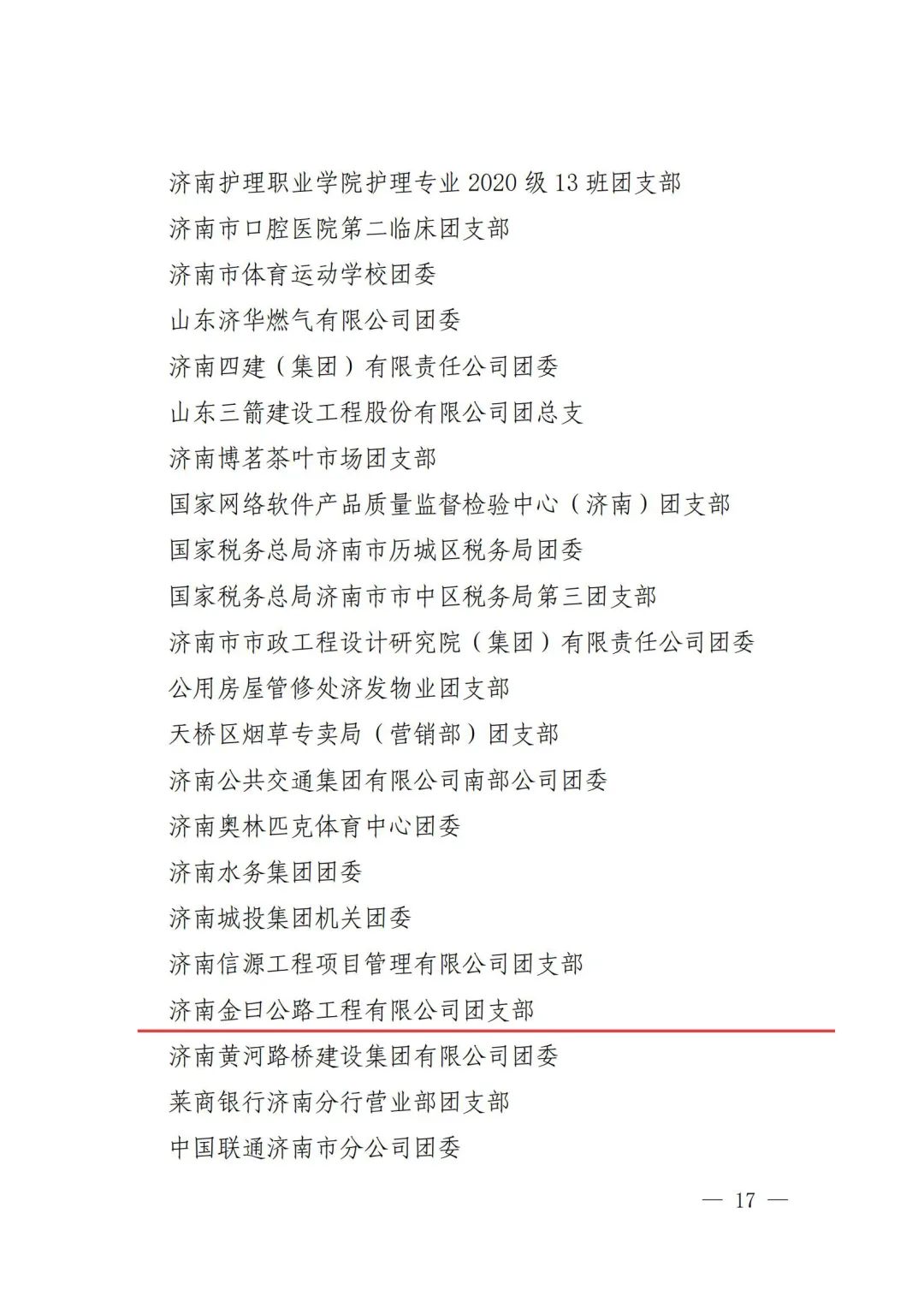 近日,共青團濟南市委公布了《關(guān)于2021年度濟南市五四出彩典型的表揚通報》,建設(shè)集團團委所屬團組織及團員青年榮獲“濟南市五四紅旗團組織”“濟南市青年志愿服務(wù)先進個人”“濟南市優(yōu)秀共青團員”“濟南市優(yōu)秀共青團干部”等4項榮譽稱號。