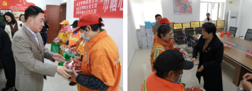 活動中,雙方黨支部黨員對“三八”國際婦女節(jié)仍堅守一線工作崗位的環(huán)衛(wèi)女職工表示崇高的敬意,并對他們無私奉獻(xiàn)、任勞任怨的品質(zhì)表示贊許,同時向環(huán)衛(wèi)職工送上慰問品。