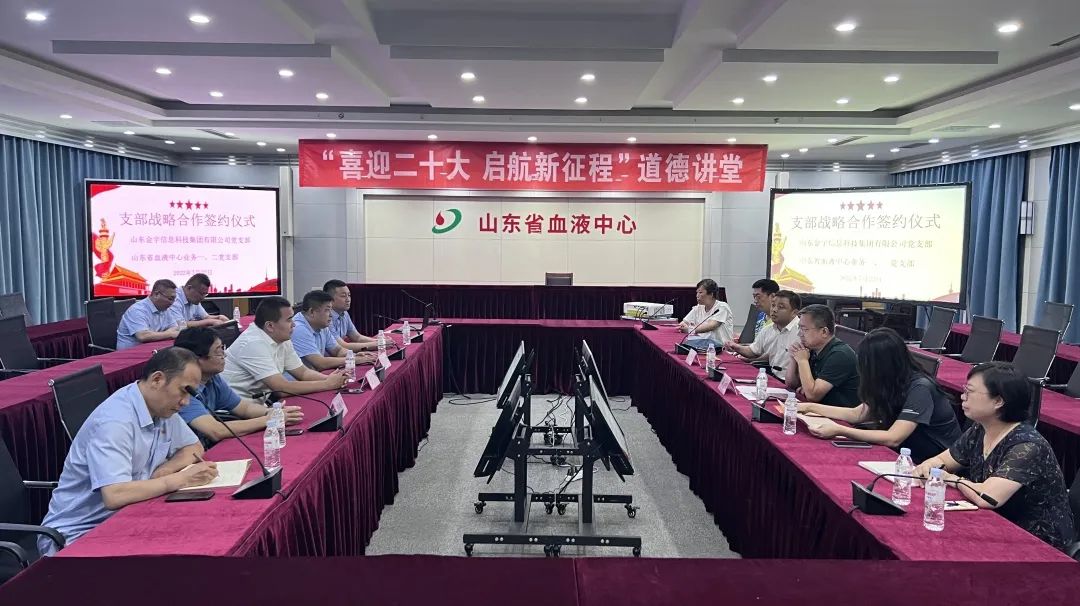 7月22日,山東金宇信息科技集團(tuán)黨支部與山東省血液中心業(yè)務(wù)一、二黨支部共建合作簽約儀式在省血液中心舉行。雙方有關(guān)負(fù)責(zé)同志和黨員干部代表出席了協(xié)議簽訂活動(dòng)。