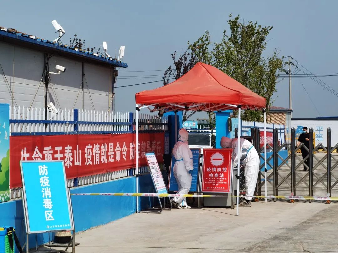 在濟(jì)南市新舊動能轉(zhuǎn)換起步區(qū)大橋安置五區(qū)項(xiàng)目入口,幾名身穿防護(hù)服的工作人員嚴(yán)格對進(jìn)出場人員進(jìn)行信息自動化登記和健康信息核驗(yàn)。