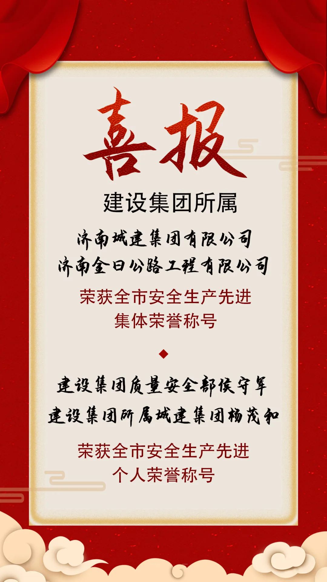 近日,濟(jì)南市安全生產(chǎn)委員會(huì)發(fā)布《關(guān)于表?yè)P(yáng)全市安全生產(chǎn)先進(jìn)集體和先進(jìn)個(gè)人的通報(bào)》,建設(shè)集團(tuán)所屬濟(jì)南城建集團(tuán)有限公司和濟(jì)南金曰公路工程有限公司榮獲全市安全生產(chǎn)先進(jìn)集體榮譽(yù)稱號(hào),建設(shè)集團(tuán)質(zhì)量安全部侯守軍,建設(shè)集團(tuán)所屬濟(jì)南城建集團(tuán)有限公司楊茂和榮獲全市安全生產(chǎn)先進(jìn)個(gè)人榮譽(yù)稱號(hào)。