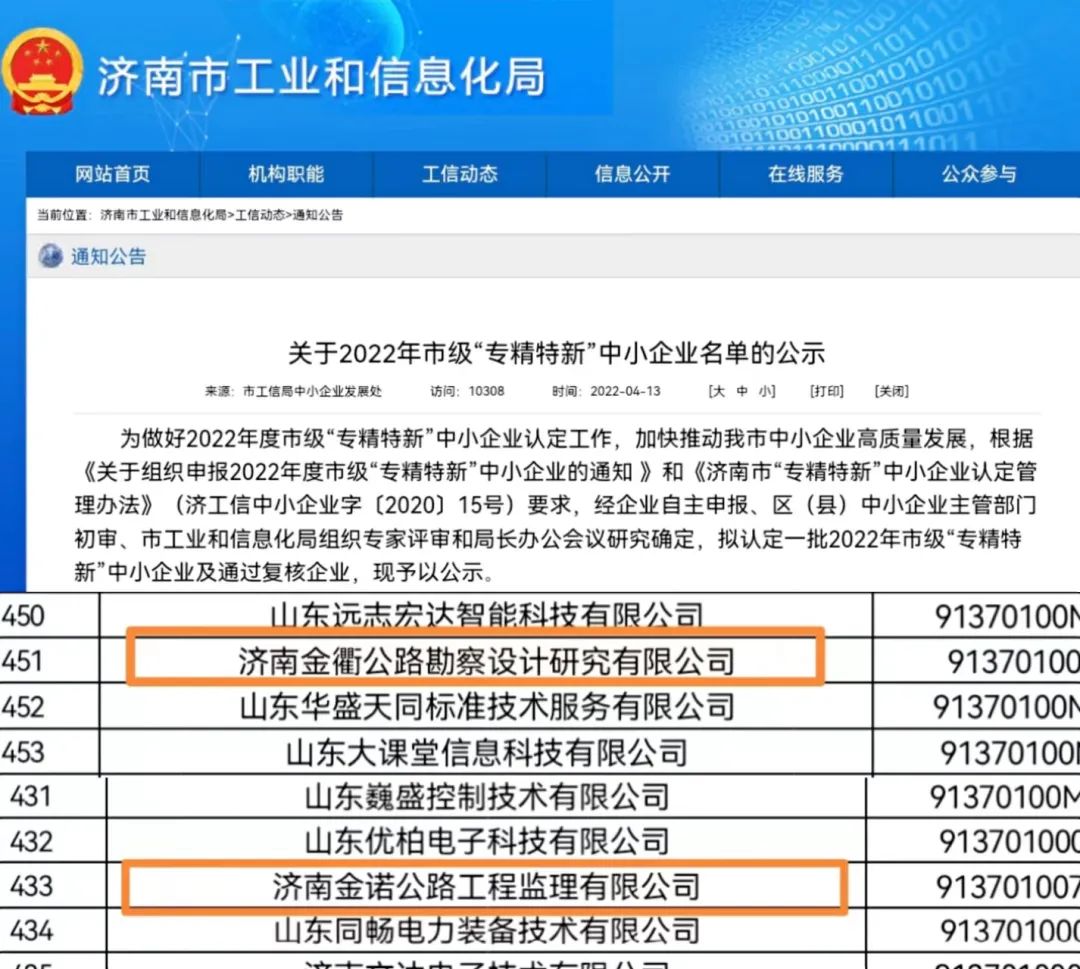 近日,濟(jì)南市工業(yè)和信息化局公布了2022年市級(jí)“專精特新”中小企業(yè)名單,金衢公司、金諾公司同時(shí)榮獲濟(jì)南市“專精特新”企業(yè)榮譽(yù)稱號(hào)。