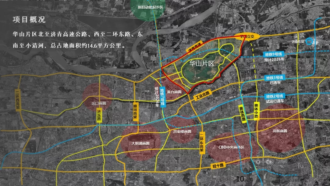 華山片區(qū)總占地面積約14.6平方公里,地處濟(jì)南市東北部,北鄰起步區(qū),與鵲山遙相呼應(yīng),區(qū)位優(yōu)越。片區(qū)規(guī)劃剩余可出讓用地約1666畝,擬采用整體策劃研究、分期實(shí)施的方式推進(jìn)。
